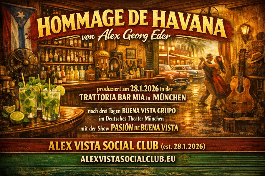 ![]() Alex Georg Eder von ALEXVISTA PRODUCTIONS ehemals EDER MUSIC PRODUCTIONS im Tonstudio mit Salsa-Band [ Bild wurde mit Künstlicher Intelligenz erzeugt, die Gesichter von David und Alex sind real ] ******* *** * *** ******* Selbst produzierte Songs von Alexander Georg Eder von ALEXVISTA RECORDS ehemals EDER MUSIC PRODUCTIONS Wählen Sie zum Anhören einfach aus folgender Liste an eigenen Musikvideos aus: |